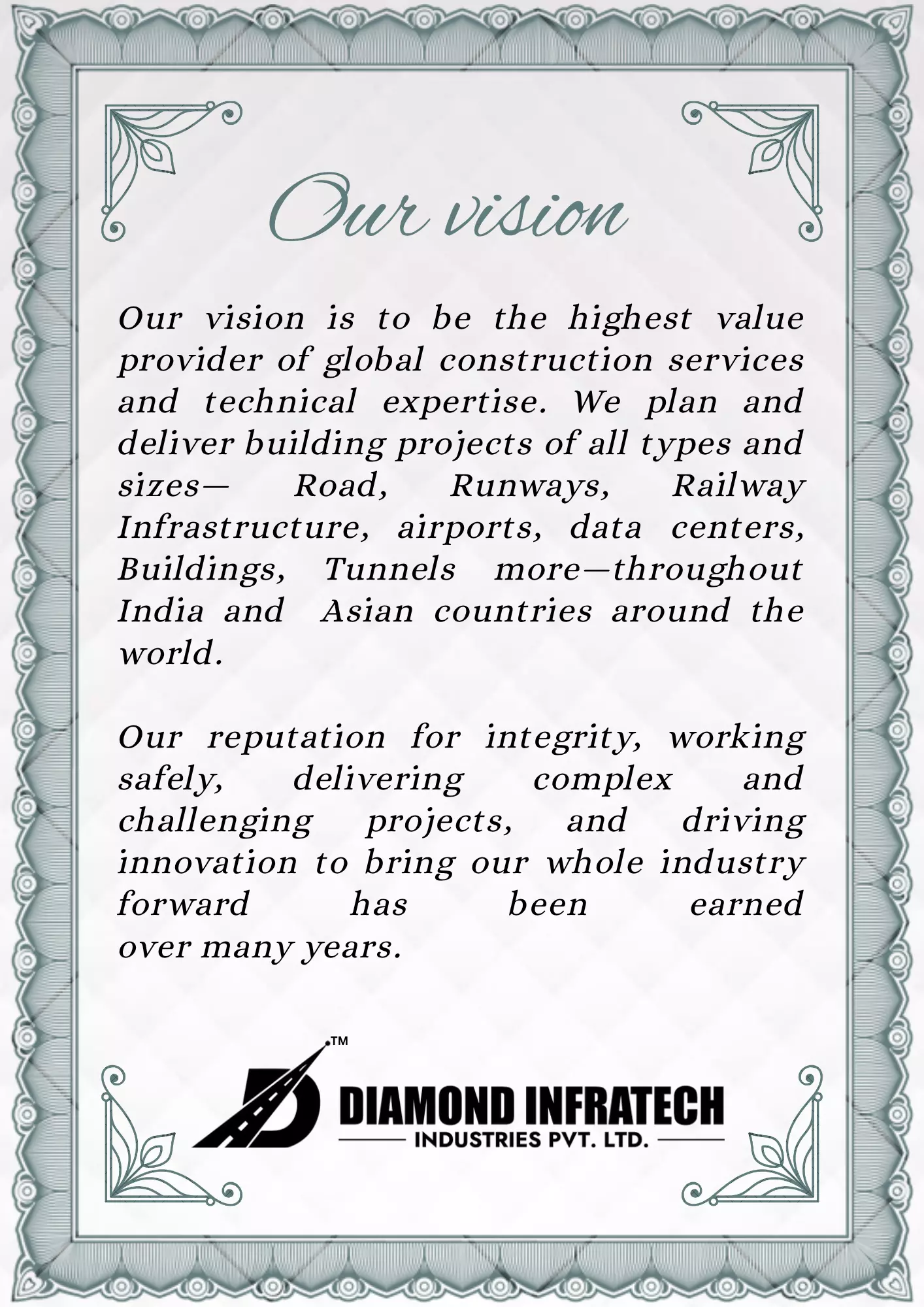 excellent infrastructure built up, through professionalism & quality consciousness.